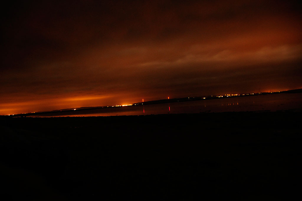 | Newly risen moon looking back across the entrance to Bembridge Harbour |