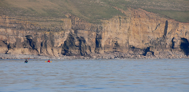 Our progress is slowed right down now as we are paddling against the tide and there is a little bit of a swell running creating quite a bit of excited water caused by the waves reflecting off the vertical chalk cliffs meeting the on coming wave - clapotis. We bounce between the nodes and antinodes like bobbing corks. Eventually after 2hrs of slogging through and against this we arrive at Freshwater. Unloading and hauling the boats off the steep shelving pebbly beach we all trudge up with our gear to camp on top of the cliffs that over looks Freshwater Bay.