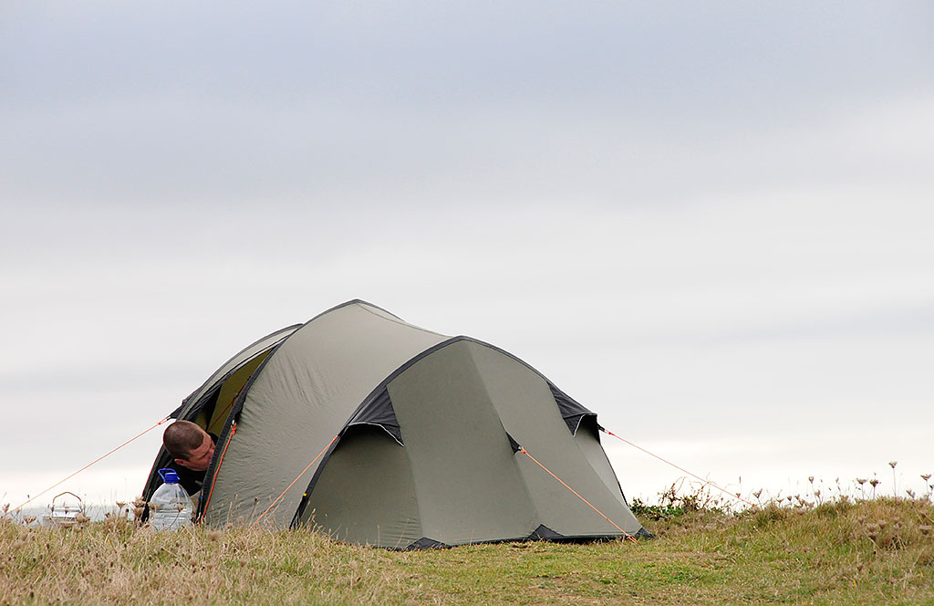 Quietly, except for that familiar metallic clink and chink of poles and pegs, we each put up our tents and crawl in. I'm really tired now, it's been non stop since 9am (yesterday) when I dropped the kids off for school, it's about two in the morning and I've just realised after getting into dry clothes and my sleeping bag that I've left my water in the kayak down at the foot of the cliff on the beach - I REALLY can't be bothered, and make do with a bag of crisps and finish off the hot soup in my flask before flaking out.