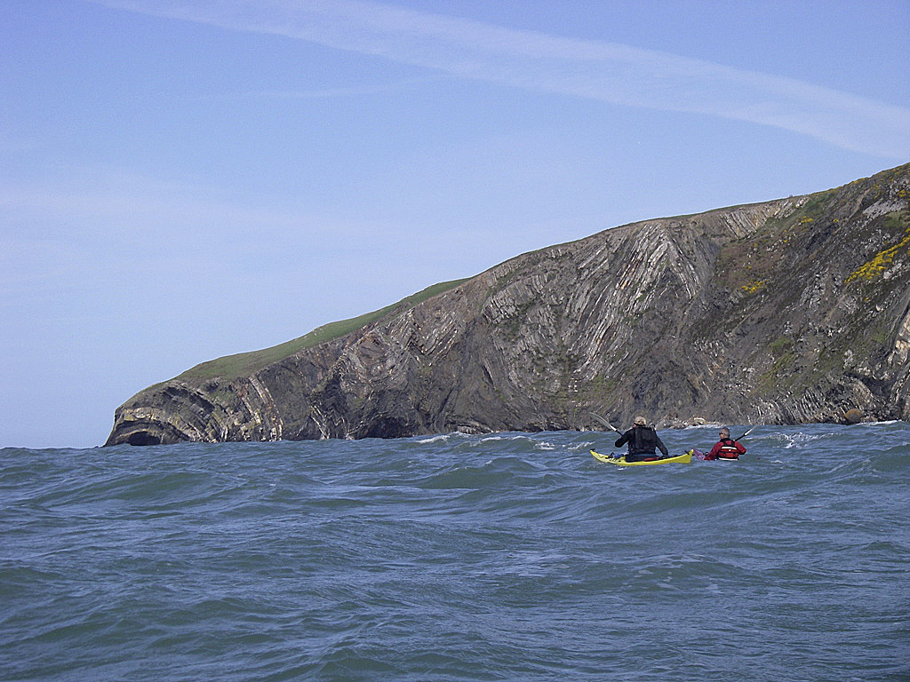 We followed a mass of kayakers out of the Nyfer estury, where we parted company by heading up the coast north towards Cardigan, as they went south on their race.