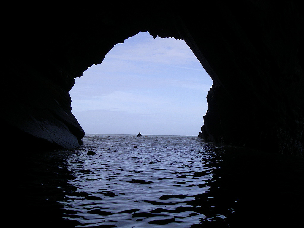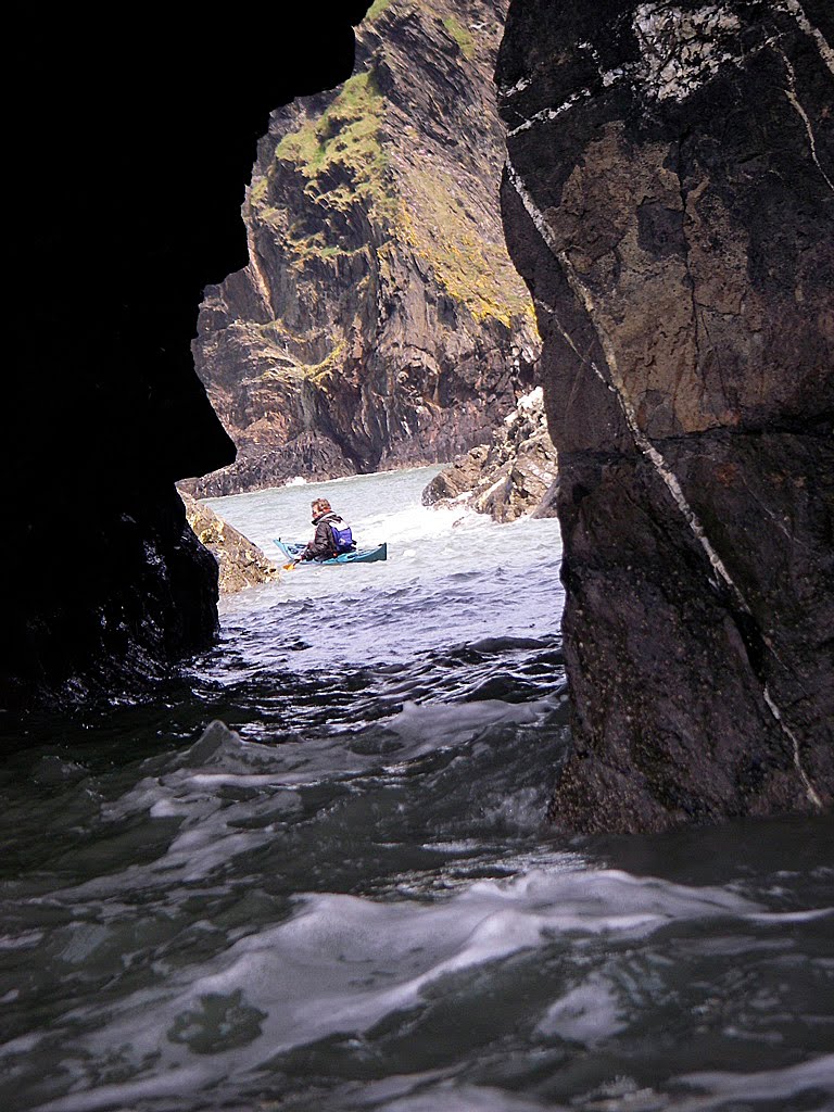 Arriving at Poppit Sands, our journeys end, the swell had picked up enough on the incoming tide to provide a good sized wave to end with a bit of surfing. What more could you ask for at the end of a very picturesque paddle. Shall have to return another day to find out if there is any broth in that Witches Cauldron!