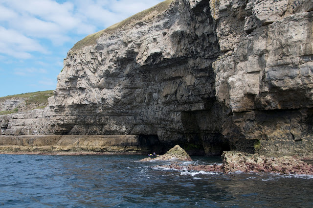 The cliffs take on a remarkable brick like patterning. Rock was quarried extensively around these parts in the 18th and 19th centuries and as far back as Roman times.
