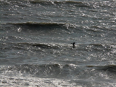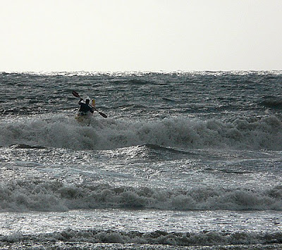 Rest Bay is a prime surf beach. On arrival the surf looked manageable when we looked down on the beach. It just got bigger as we made ready to launch. Maria put on an exceptional show of determination but decided after being ejected a number of times that she would stay on the beach and take photos. This made me feel really rather guilty as Mark and I enjoyed ourselves out on the waves.