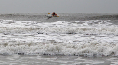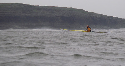 Rest Bay is a prime surf beach. On arrival the surf looked manageable when we looked down on the beach. It just got bigger as we made ready to launch. Maria put on an exceptional show of determination but decided after being ejected a number of times that she would stay on the beach and take photos. This made me feel really rather guilty as Mark and I enjoyed ourselves out on the waves.