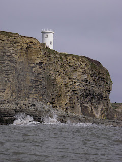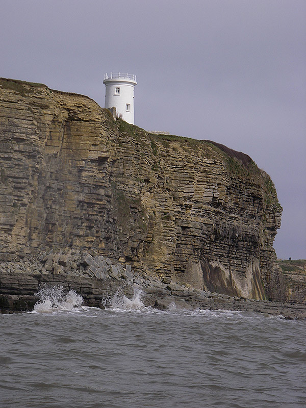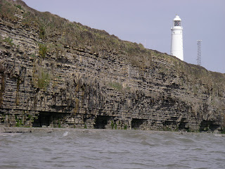 Tresilian Bay, with Reynard's Cave on the left (scene of the execution of pirate Colyn Dolphin). The tide not high enough yet to go and exploreGiven the conditions, I was maintaining just over a fairly respectable 3 knots. That was until I passed Nash Lighthouse and went around Nash Point. Just beyond the opening of Cwm Marcross the waters quickly kicked up a state of confusion as they passed over the rock ledges.