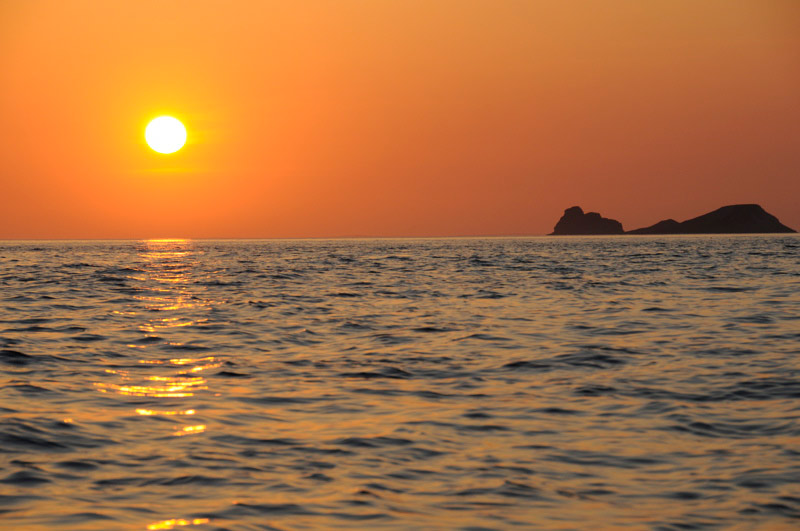 The sun disappears over the horizon, and I turn and head on back to dry land.