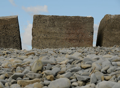 Looking back from Gileston, at the water intake and the concrete blocks