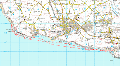 Mentally I set my lunch stop and turning point at a small beach just before Traeth Mawr, the other side of Nash Point. The incentive was to get there before the tide had built up enough to stop my rounding the point.